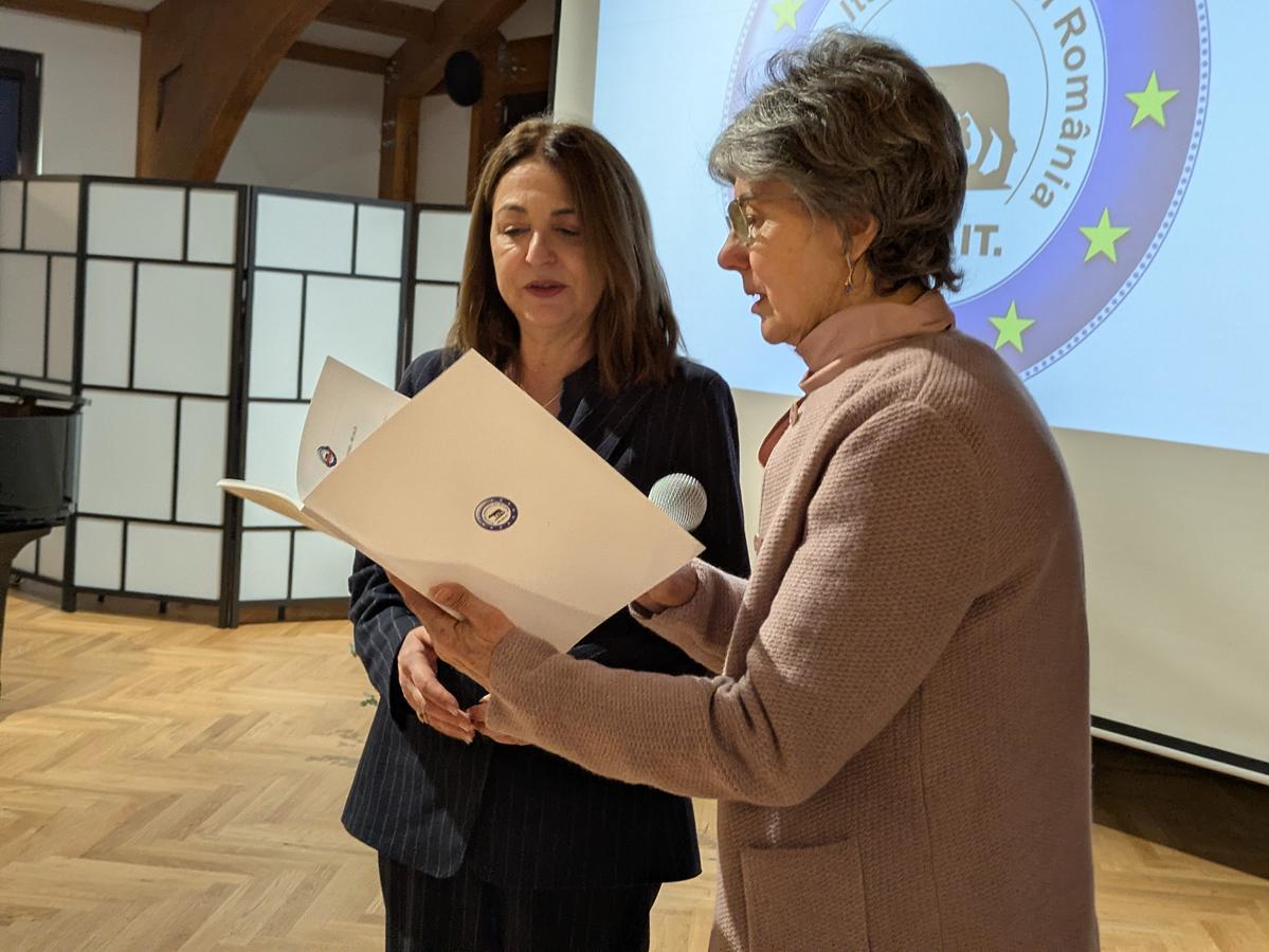 Întâlnirea a fost onorată de prezența Excelenței Sale, doamna Laura Aghilarre, Ambasadoare a Republicii Italiene în România, care a transmis salutul său celor prezenți.