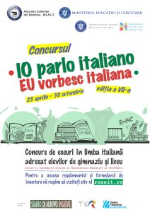 Asociaţia Italienilor din România – RO.AS.IT. anunță lansarea celei de-a șaptea ediții a concursului „IO PARLO ITALIANO / EU VORBESC ITALIANA”, aprobat de Ministerul Educației şi Cercetării, în conformitate cu ANEXA nr. 5 la O.M.E.C. nr. 3025/14.01.2025.