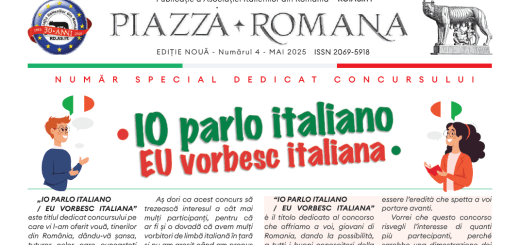 PIAZZA ROMANA ediție nouă nr. 4 – mai 2025 (.pdf) „IO PARLO ITALIANO / EU VORBESC ITALIANA” este titlul dedicat concursului pe care vi l-am oferit vouă, tinerilor din România, dându-vă șansa, tuturor celor care cunoașteți bine limba italiană, de a participa la un concurs național echivalent cu olimpiada de limbă maternă. Dragi tineri, acest concurs este un mijloc de...