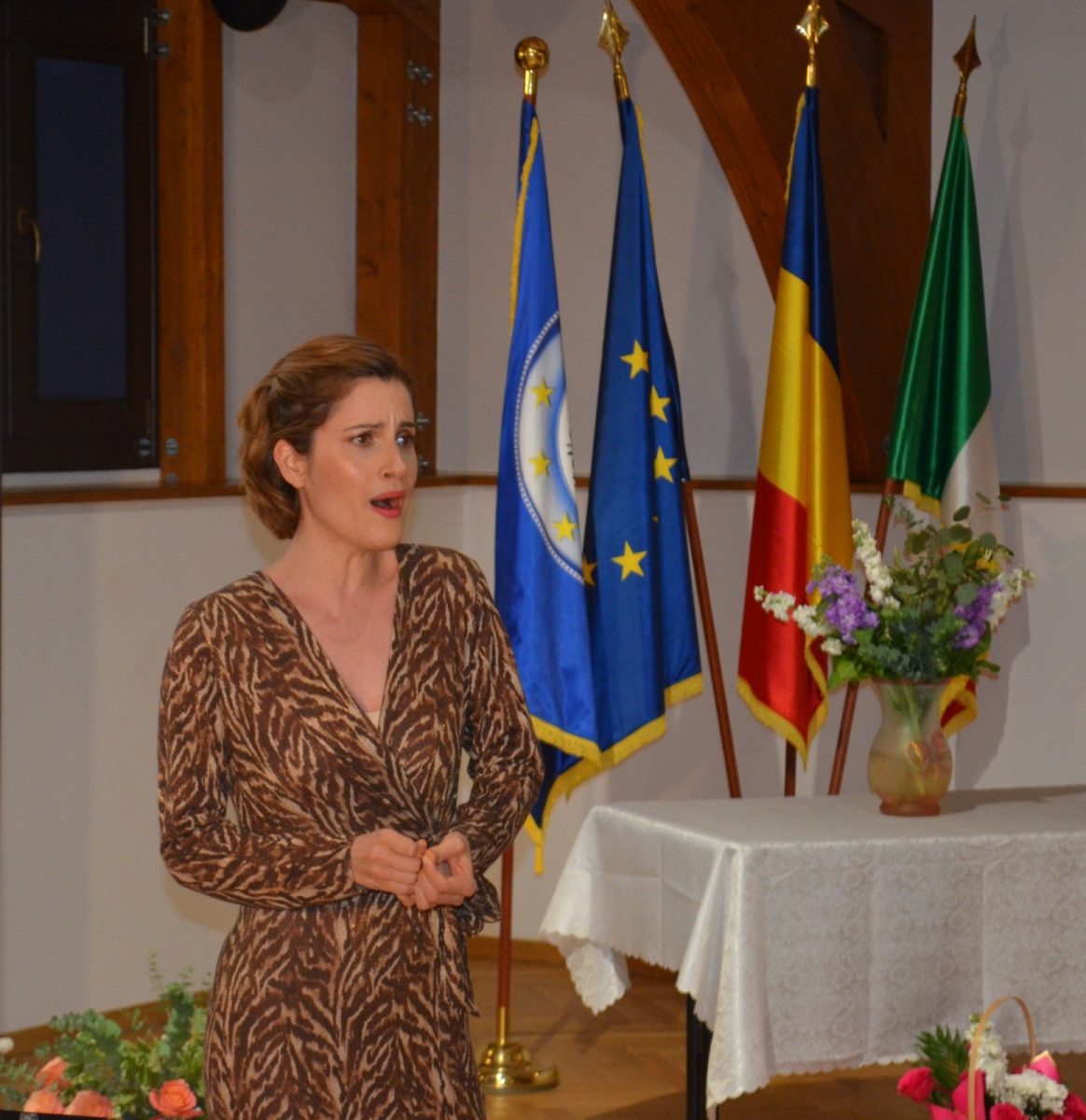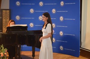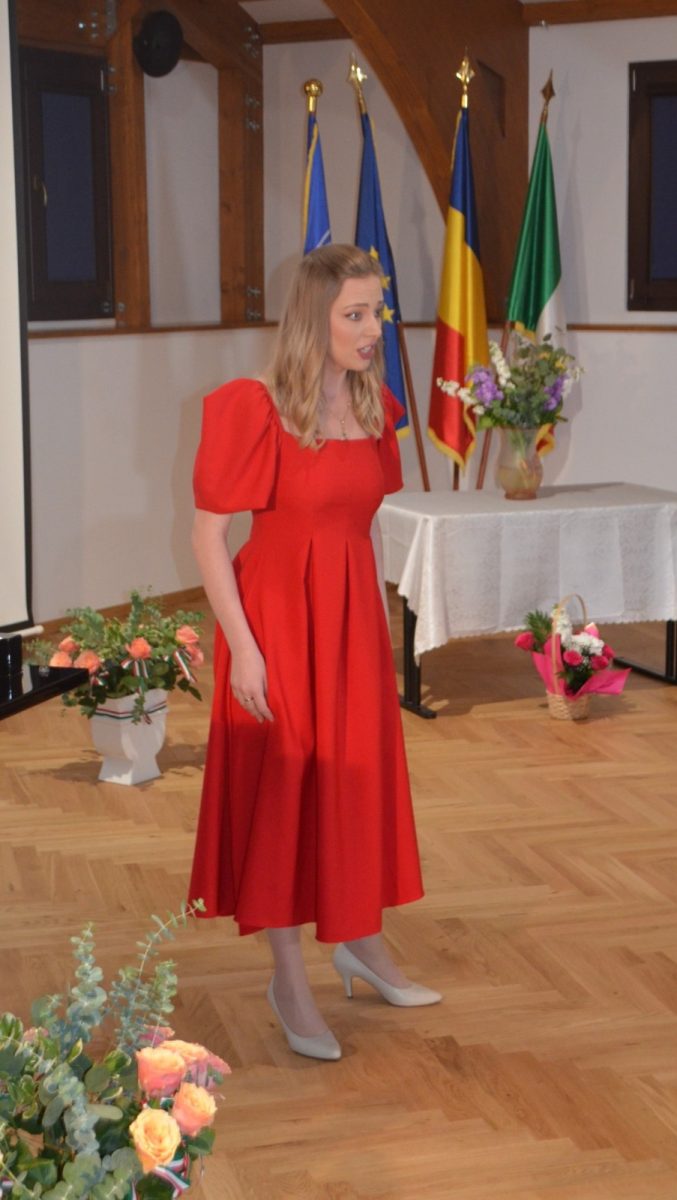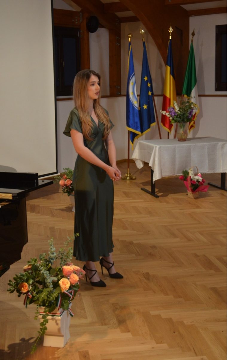 Mesajul doamnei deputat Ioana Grosaru, președintele Asociației Italienilor din România – RO.AS.IT., a fost unul marcat de emoție, și a punctat importanța democrației în momentele de cumpănă ale unei națiuni, Italia alegându-şi în urmă cu 79 de ani drumul republican prin referendum naţional, în care au votat pentru prima dată şi femeile. De asemenea, Doamna Grosaru a adresat cuvinte de laudă tinerelor talente aflate la început de drum, care au delectat publicul cu piese din repertoriul clasic internaţional, ce le-au pus în valoare vocile extraordinare, talentul şi munca: Bianca Vlad, Iulia Munteanu, Teodora Grumeza, Ştefan Nicolae, Rozalba Sandu, Liviu Zăhărăchescu, Isabela Stănescu, Medge Allouchery, Georgiana Costache, Maria Gugu. Tinerii au fost acompaniaţi la pian, ca de obicei, de neobosita lor profesoară, conf. univ. dr. Raluca Ouatu.